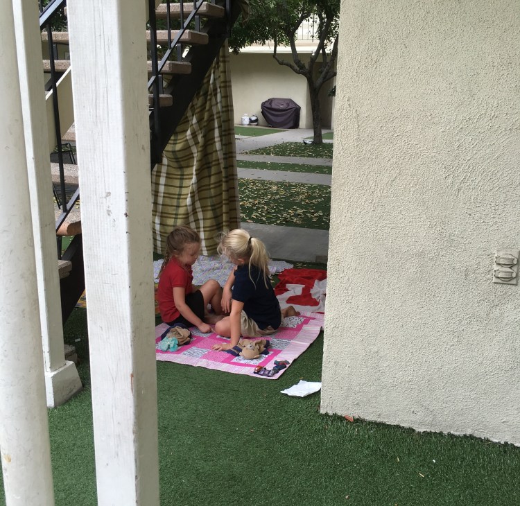 Each site comes with a play area, but the kids have their own ideas of where to play!